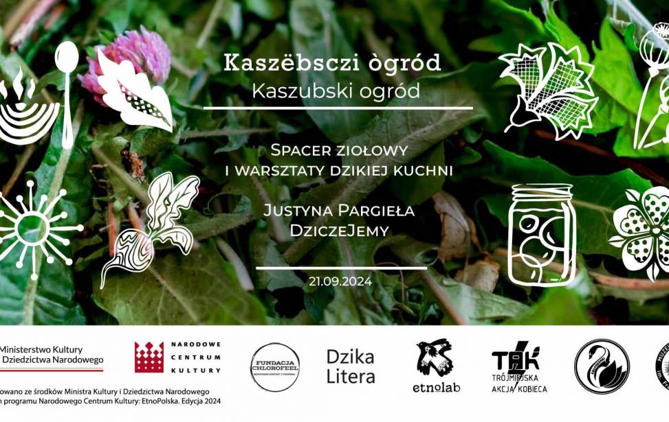 W ramach projektu Kaszëbsczi ogród / Kaszubski ogród odbył się spacer zielarski (zapisy) oraz warsztaty z dzikiej kuchni.