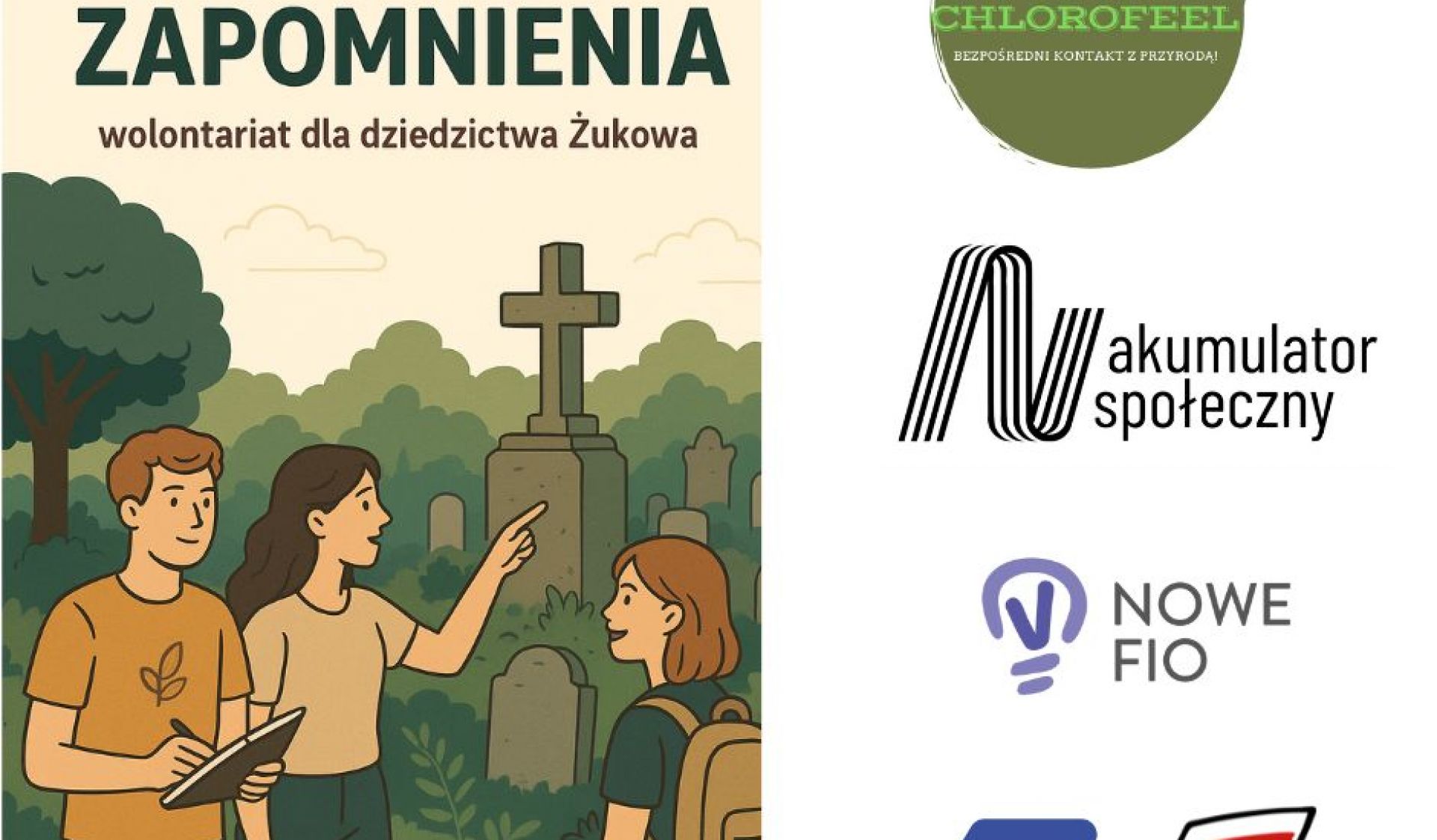 Podstawą i inspiracją do realizacji projektu: „Ocalić od zapomnienia - wolontariat dla dziedzictwa Żukowa” był szereg licznych projektów realizowanych przez wolontariuszy Szkolnego Koła Wolontariatu przy Zespole Szkół Zawodowych i Ogólnokształcących w Żukowie na rzecz społeczności lokalnej. W związku z wysokim zaangażowaniem młodzieży ponadpodstawowej na rzecz społeczności gminy Żukowo, projekt będzie odpowiedzią na potrzebę budowania poczucia wspólnoty, integrację wolontariuszy i edukację społeczną na temat dziedzictwa kulturowego i i historycznego Żukowa. W ramach projektu zostanie wykorzystane doświadczenie Fundacji Chlorofeel w edukacji przyrodniczo-środowsikowej, aby zwiększyć świadomość młodzieży realizującej projekt jak i mieszkańców Żukowa na temat bioróżnorodności i zależności ekologicznych w miejscach takich jak cmentarze.